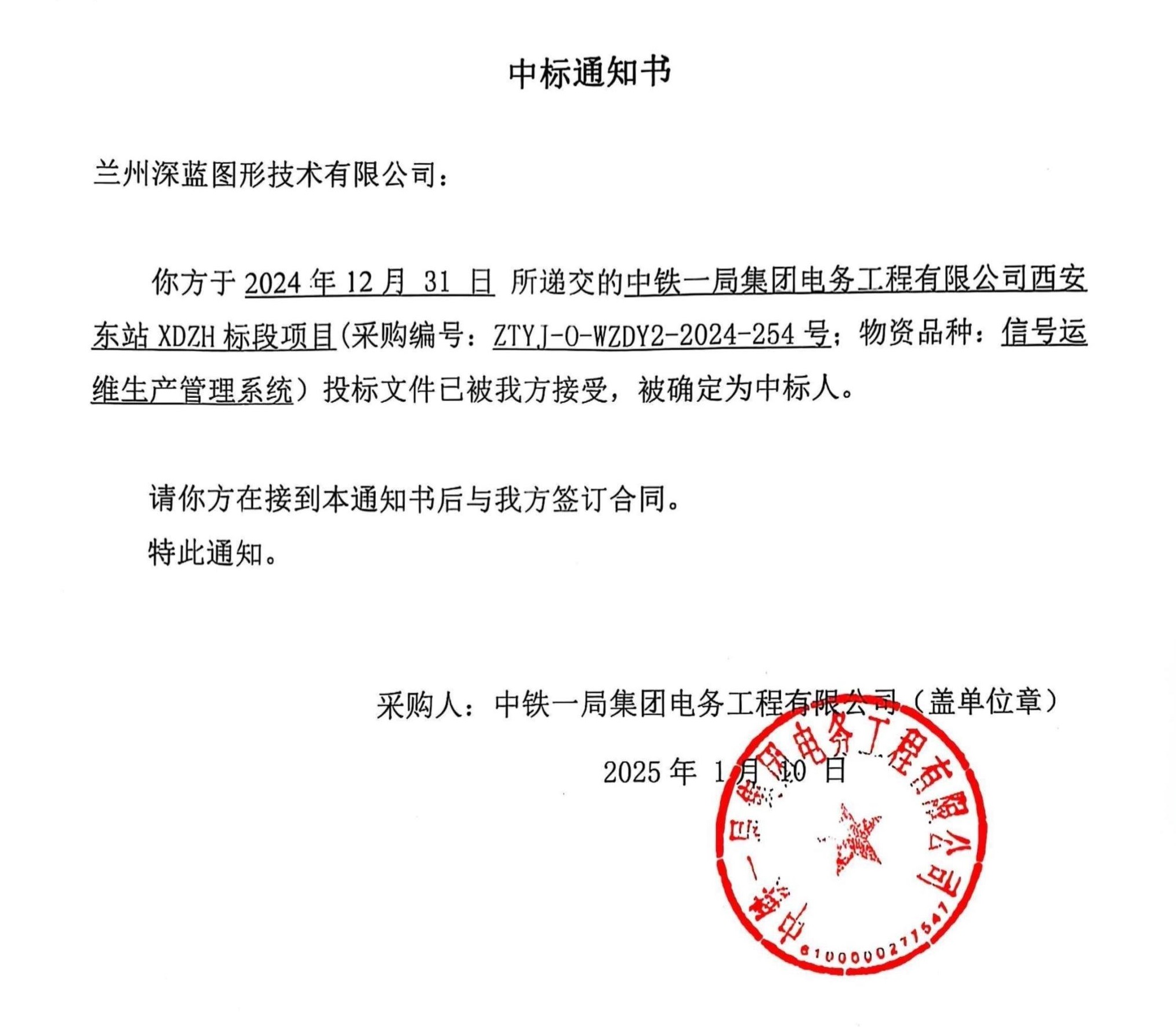 熱烈祝賀我公司中標中鐵一局集團電務工程有限公司西安東站XDZH標段項目