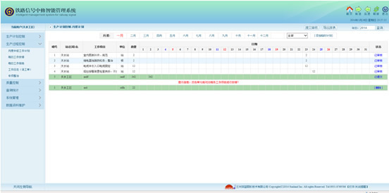在“生產過程控制”中月度中修工作計劃為該功能中的主要功能;如果當年度年度計劃電務段已經審核通過,可以對每月的計劃安排每日執行的數量。